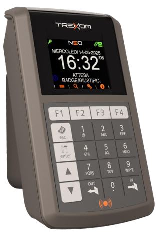 NEO è un terminale raccolta dati dove innovazione e affidabilità si coniugano perfettamente. Ideale per la rilevazione presenze, controllo accessi e attività di cantiere. NEO, basato sul modulo multiprotocollo ESP32, con memoria flash da 32 MB e memoria PSRAM da 16 MB. È installabile in verticale a parete ed in orizzontale a banco e su tornelli.